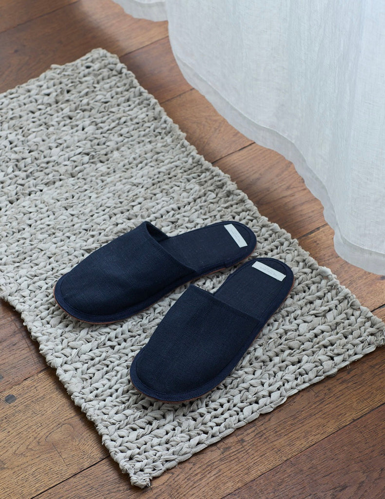 Breathable linen and luxe leather bottom's make these slippers perfect for cruising around the house. Simple, functional, and comfortable, the sizing is unisex, M or L. Be sure to measure your foot before ordering.