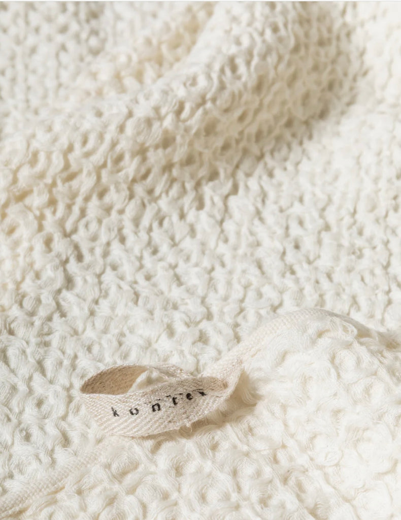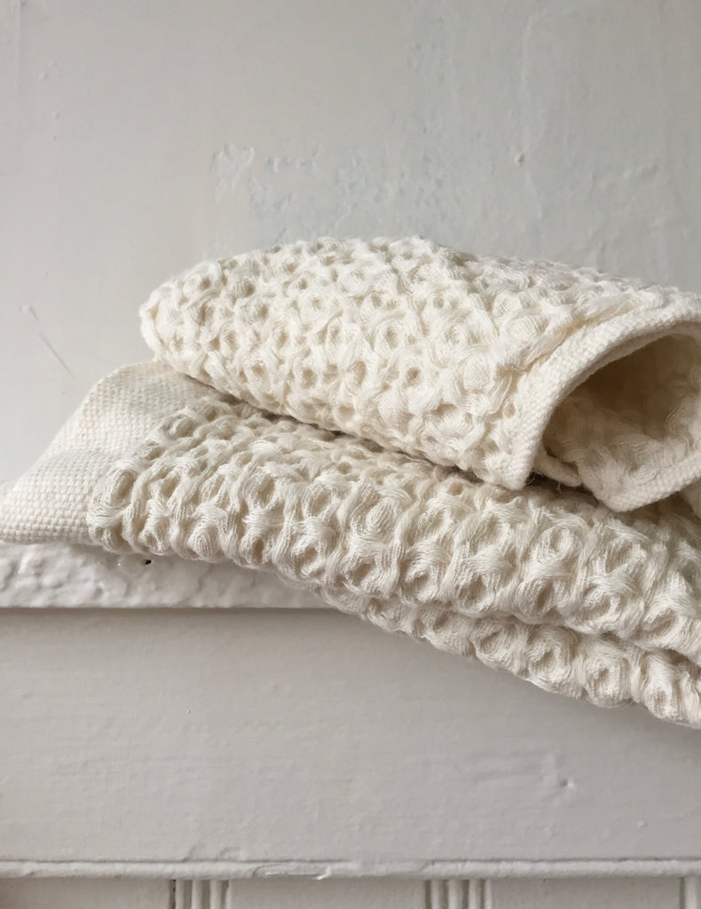 The Lattice weave towel collection features a three-dimensional blend of linen, ramie, and cotton fibers. They are exceptionally absorbent and quick-drying towels making them perfect for tiny bathrooms with inadequate ventilation. This waffle weave is soft to the touch, elegant, and simply practical. Each towel has a handy cotton loop for hanging.