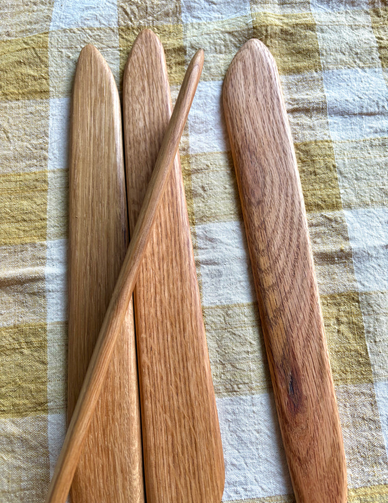 Great design is often the simplest. This oak mixer is your batter beater, cake mixer, stir fry-er, bowl scraper. It’s an all things-sturdy-stir-stick, hand carved and knife finished in sustainable milled white oak. Add it to your kitchen arsenal. You won't be disappointed. As each mixer is hand-made, burls and grains will vary.