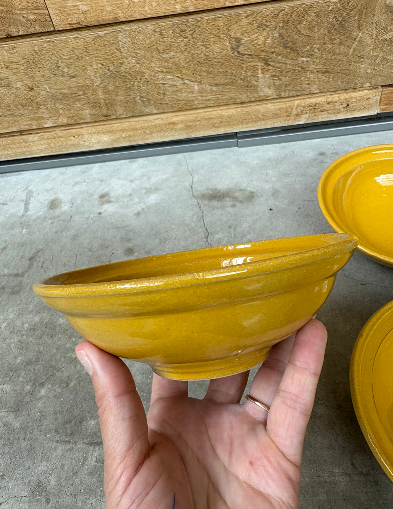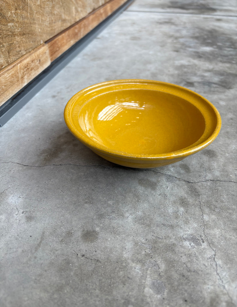 Smaller sized bowl made of rustic earthenware. The yellow/ochre tone and profile have a strong Provencal influence. Perfect for dips, yogurt, ice cream, or a bit of soup. Variations in glaze to be expected. Each bowl is sold separately.