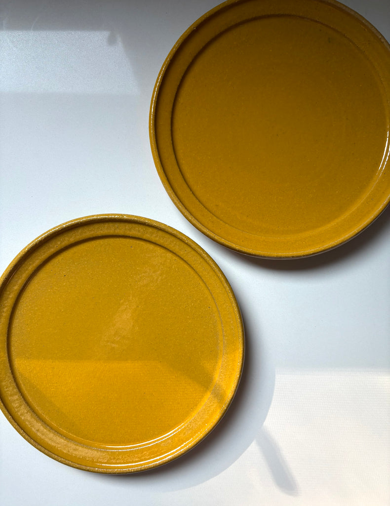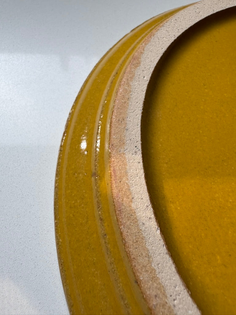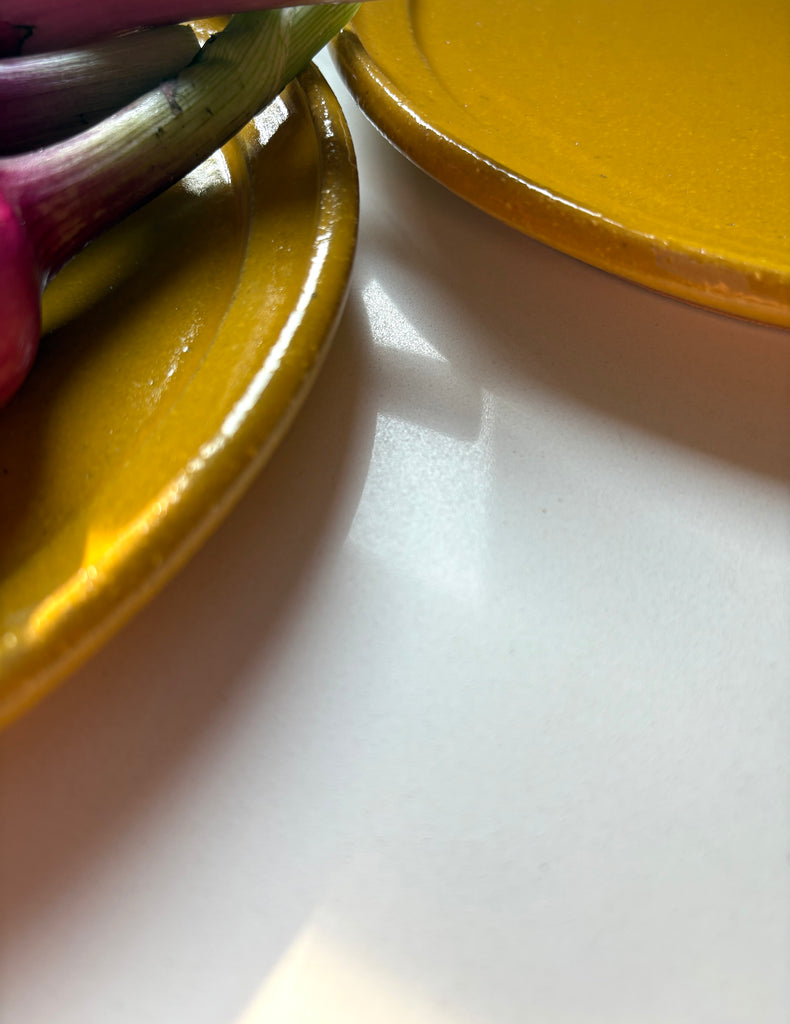 Best medium-sized plate thrown in rustic earthenware. The yellow/ochre tone and profile have a strong Provencal influence. Perfect for lunch, salads, or your morning toast. Variations in glaze to be expected. Each plate is sold separately.