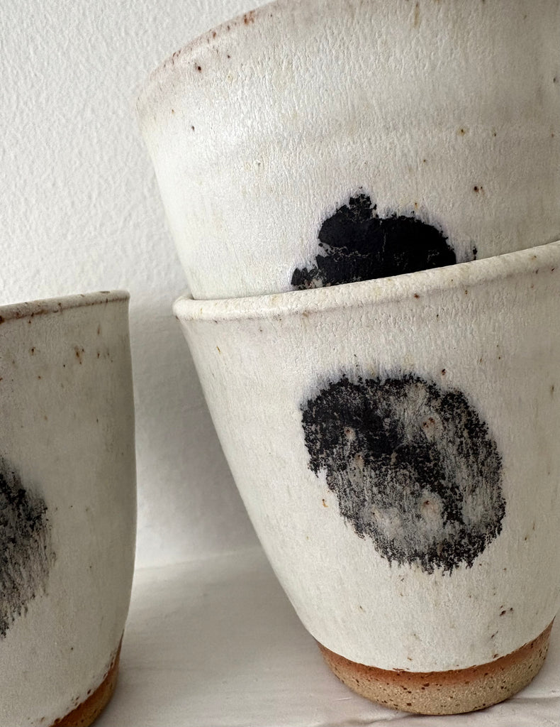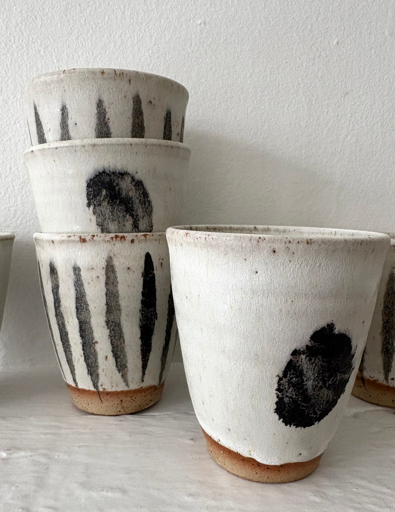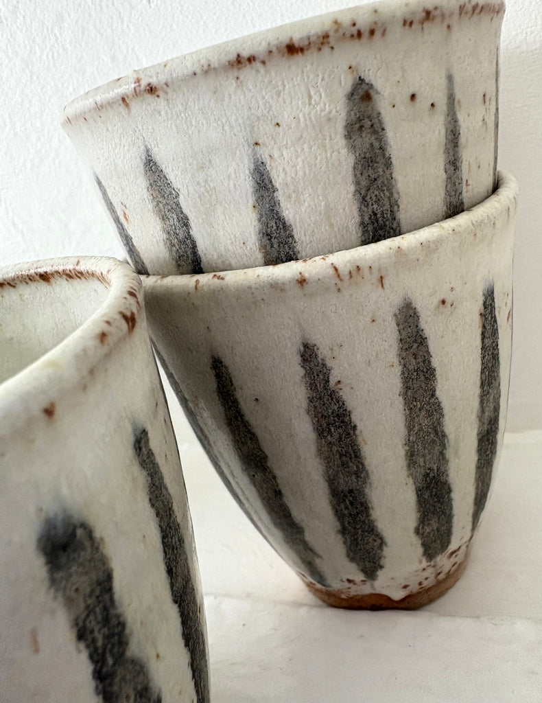 Hand-thrown, stoneware cup by UK potter Pip Hartle. We love these any time of the year. Tea, coffee, water, wine or your favorite mocktail. Pros and pros: feel good in the hand, stack nicely. This series features a more tapered profile.