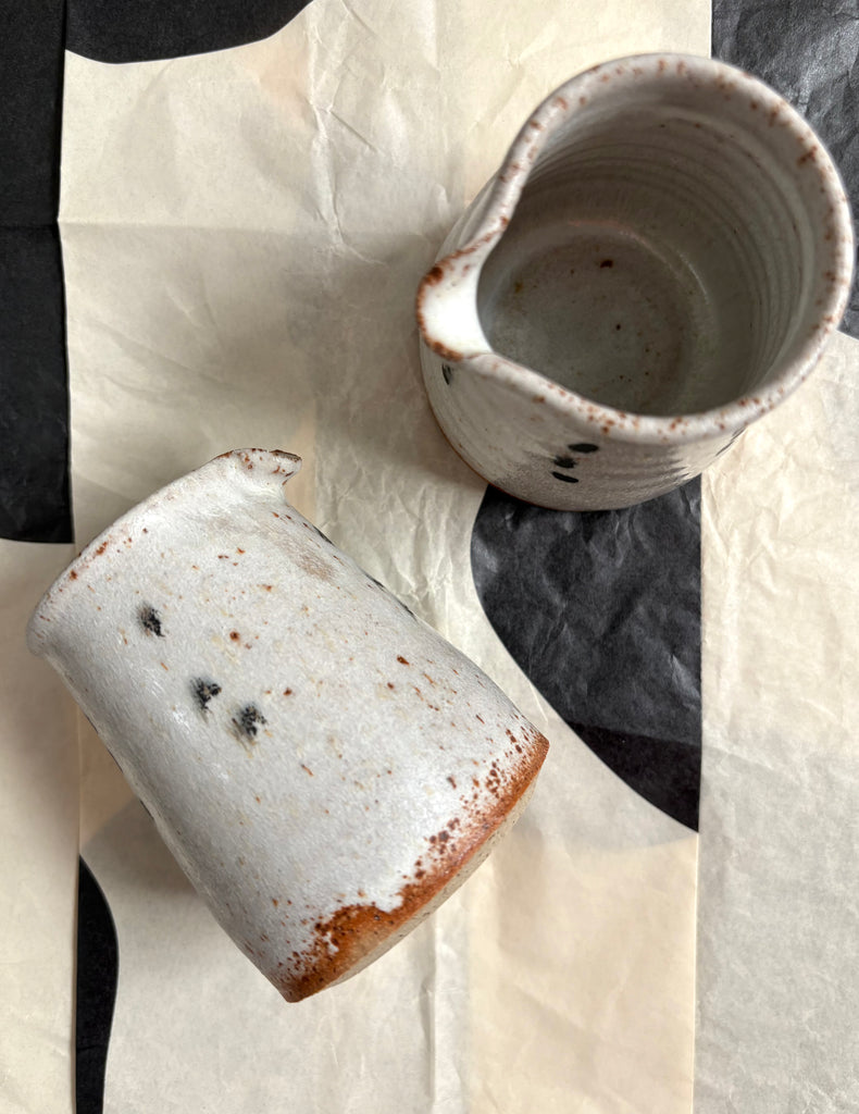 Hand-thrown, stoneware jug. Super handy for syrups, gravy, creme, or for whatever is needing a little smidge. Handles a tiny bouquet of flowers quite nicely too. Each is unique. Sold separately.