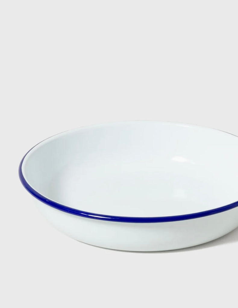 Serving Dish: Medium: White/Blue Rim