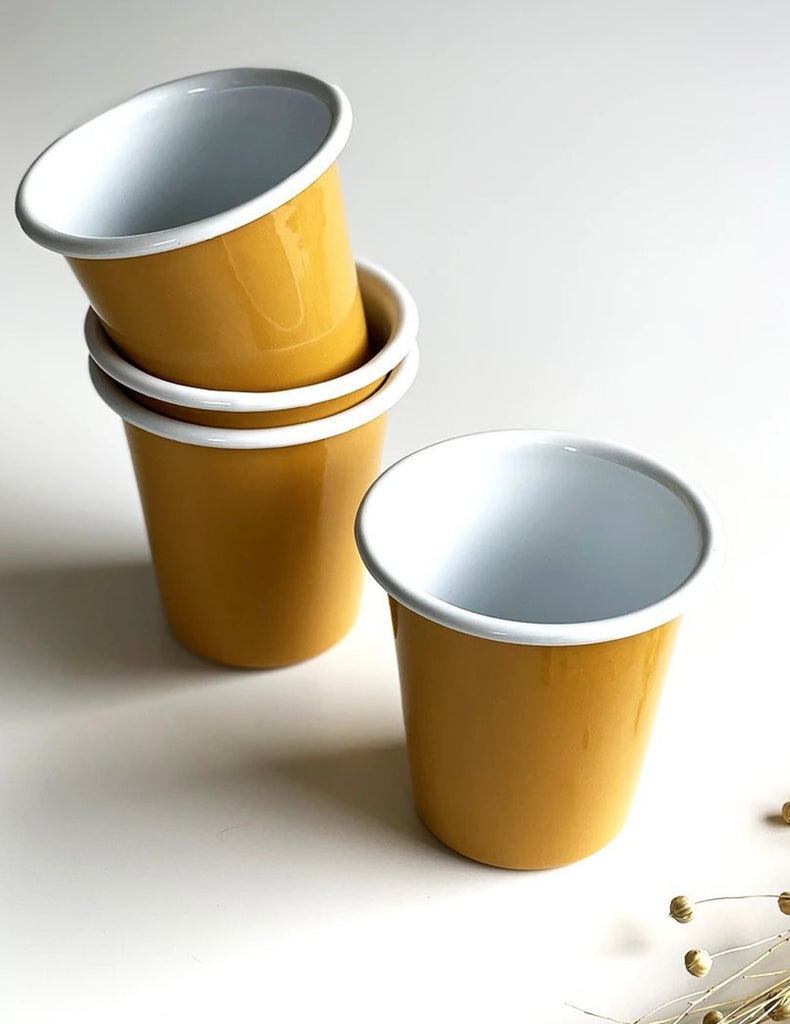 Enamelware tumblers for home or picnic. They also make great toothbrush holders in a pinch. Pair them with Falcon's 3 pint jugs for a very sweet and generous gift.
